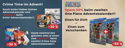 Crime Cases: Bestelle 2 Adventskalender von Crime Cases und profitiere von 30% Rabatt auf den zweiten.