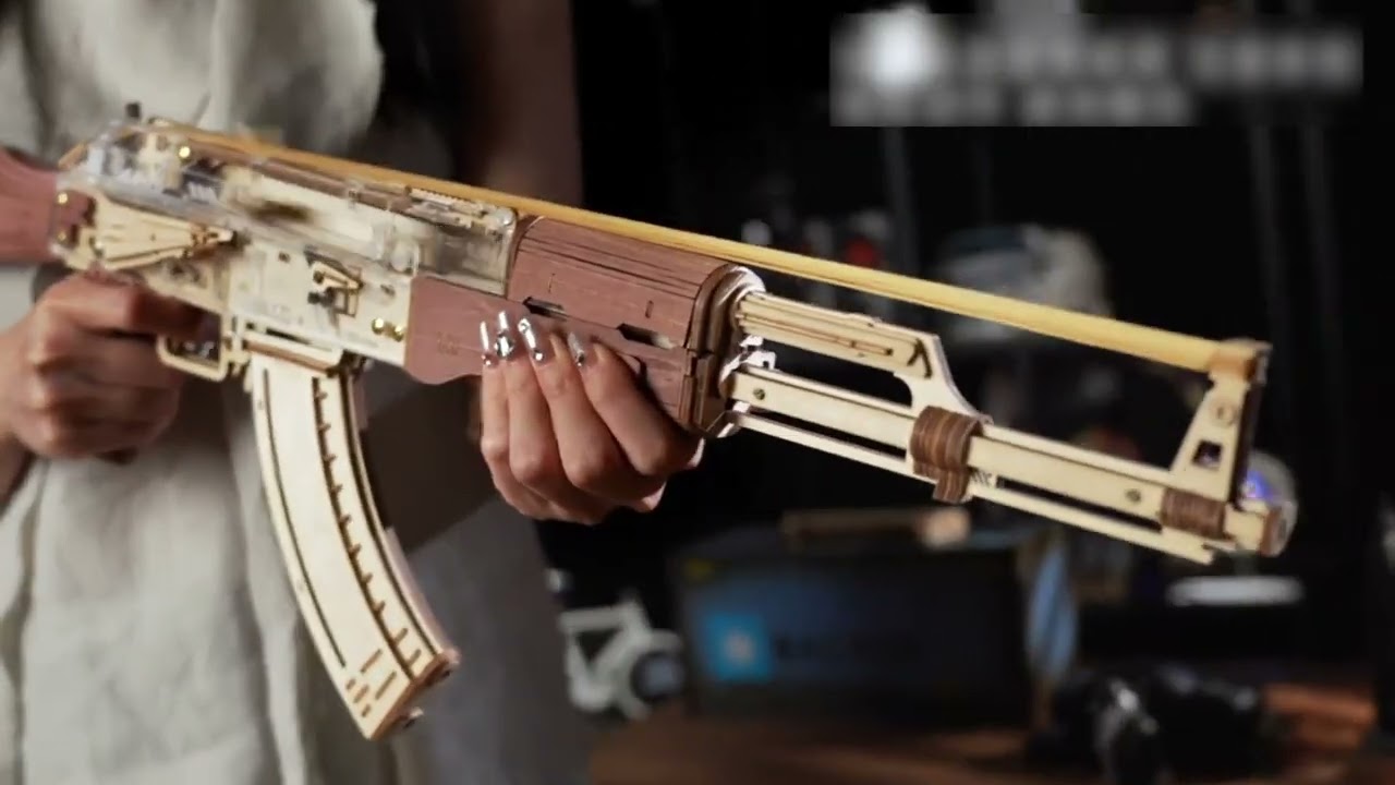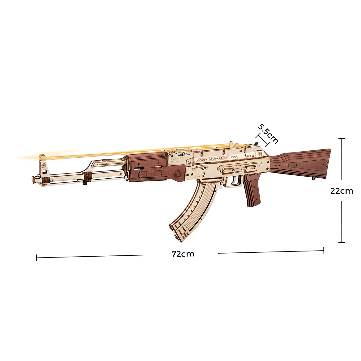 Begib dich auf eine spannende Reise in die Welt der Mechanik mit den Holzmodellen von ROKR! Dieser detailreiche 3D-Bausatz aus lasergeschnittenem Holz lässt dich ein realistisches Modell der legendären AK-47 bauen und dabei die Funktionsweise komplexer Mechanismen entdecken. Nachdem du das Gewehr zusammengebaut hast, lassen sich mit dem Modell Gummibänder im Einzel- oder Serienfeuer verschiessen.