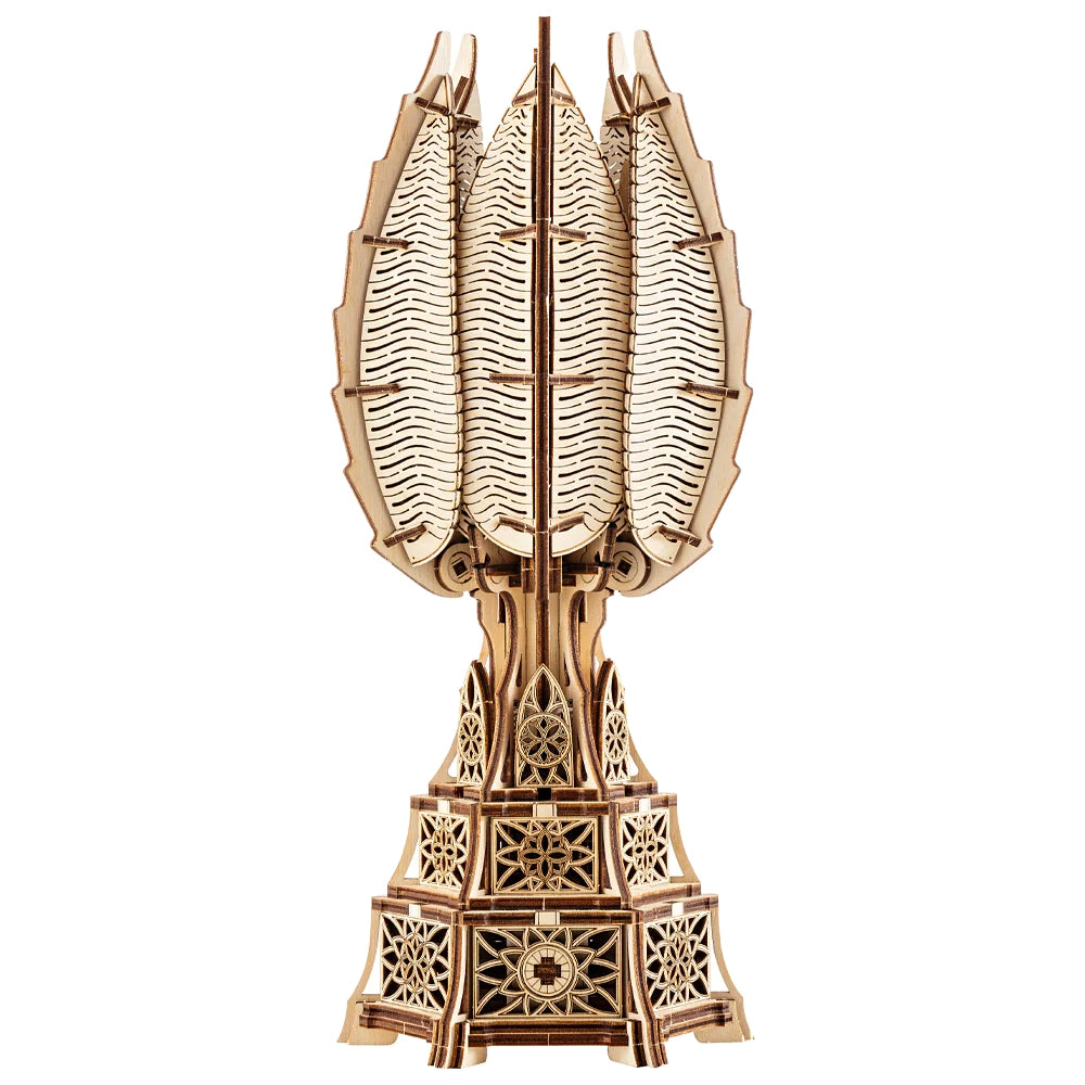 Die Fiery Bloom ist ein mechanisches Holzmodell, welches von WoodTrick entworfen wurde. Diese stilvolle Laterne besteht aus 246 Teilen und kann in 3-5 Stunden zusammengesetzt werden. Das Modell stellt eine unterhaltsame Herausforderung für erfahrene Bastler dar. Aber auch Anfänger werden es problemlos zusammenbaen können, da eine sehr detaillierte und klare Anleitung zum zusammenbauen im Set enthalten ist.