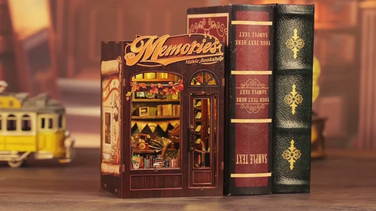 Erlebe, wie dieses kunstvoll gestaltete Book Nook dein Bücherregal zum Leben erweckt und lass die Musik die Seiten deiner Lieblingsbücher erhellen – ein perfektes Geschenk für Musikliebhaber, Buchsammler und alle, die das Besondere schätzen.