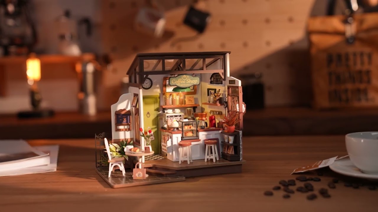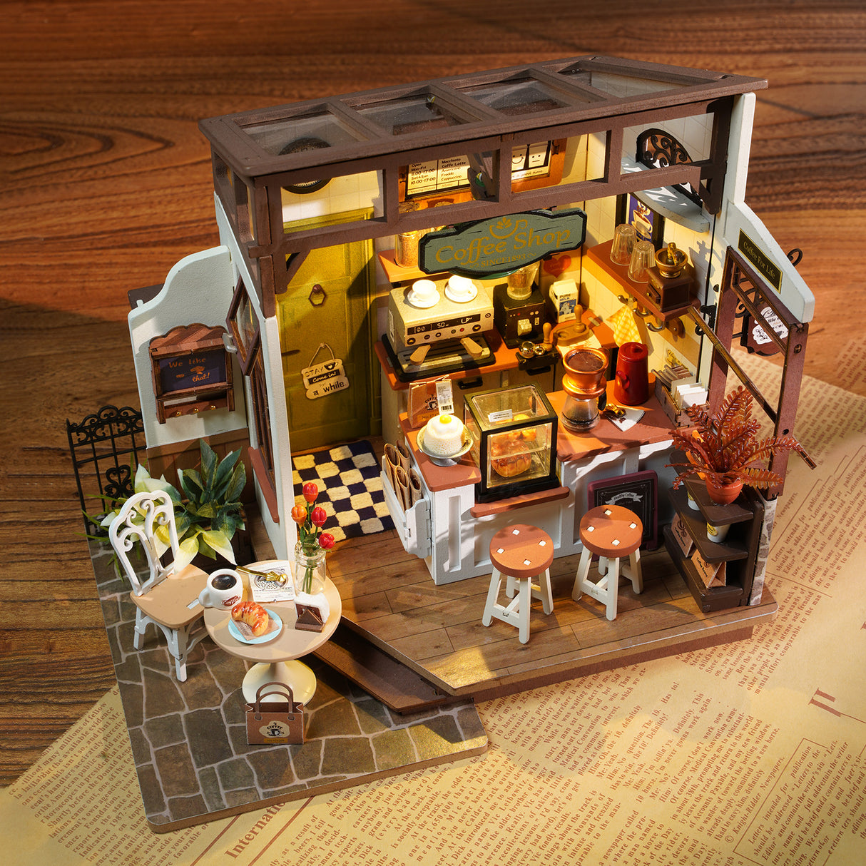 Mit dem Rolife Slow Life Café Miniatur-Bausatz erhältst du: