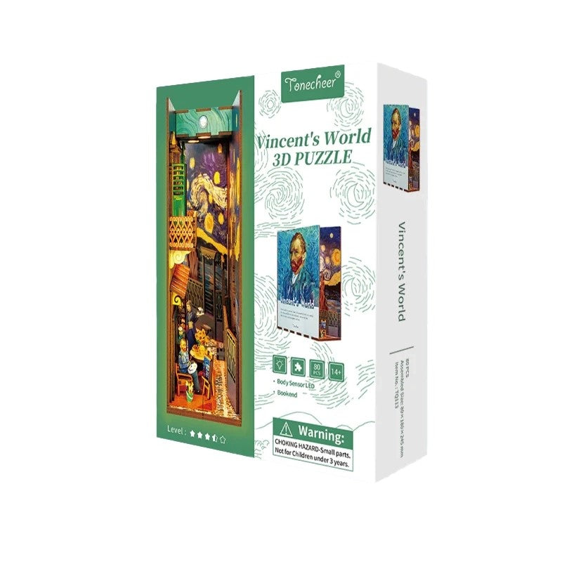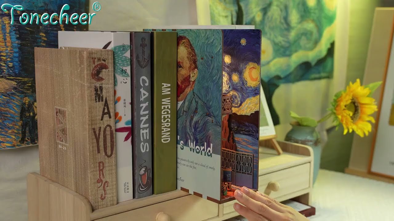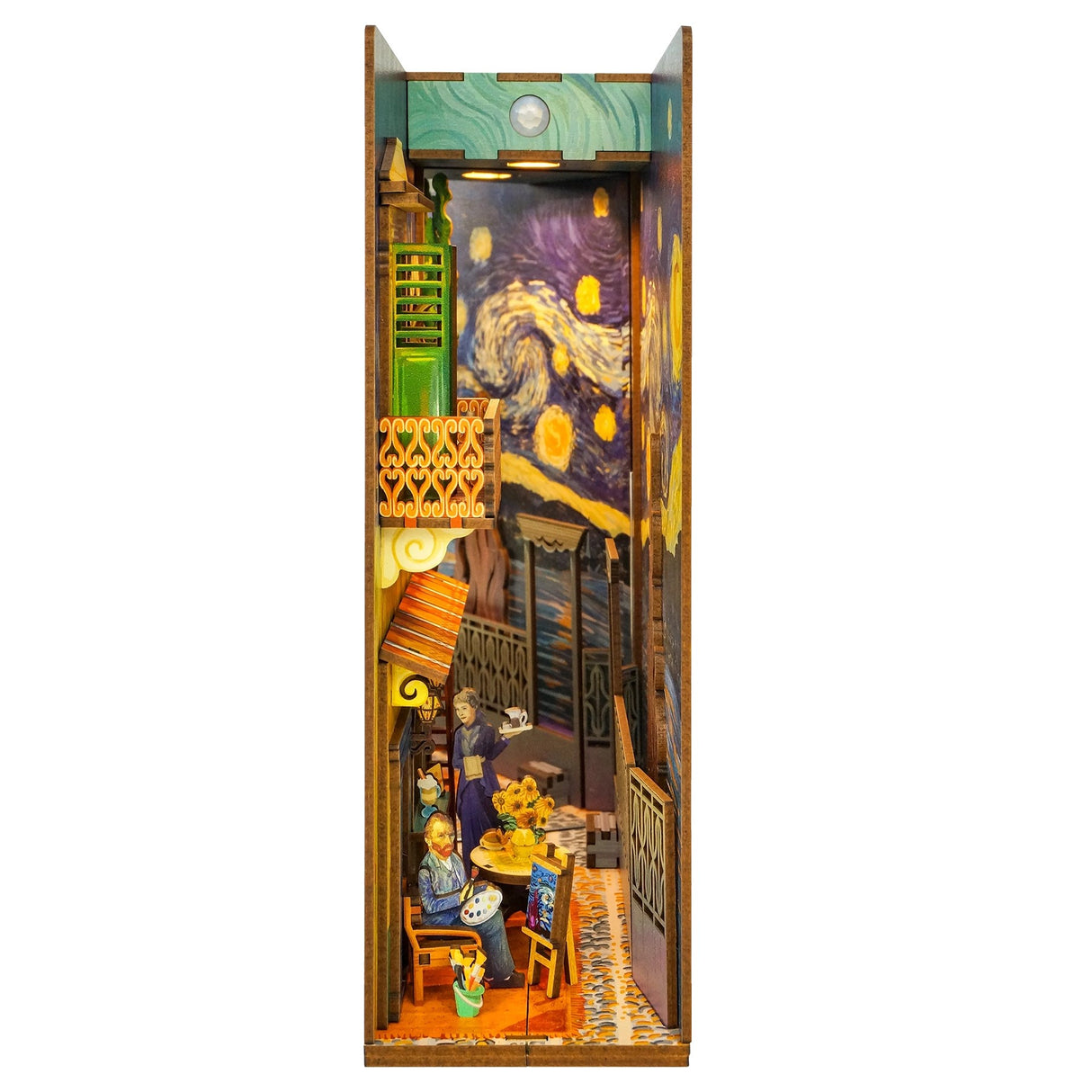 Erlebe die Welt von Vincent van Gogh hautnah mit dem Vincent's World - Book Nook von Tonecheer. Diese detailreiche Miniatur-Szene entführt dich in das berühmte gelbe Haus in Arles, Frankreich, in dem der legendäre Maler Ende des 19. Jahrhunderts lebte und arbeitete.