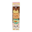 Alle vier Figuren haben die charakteristische Macaron-Form mit flachem Körper und sind aus weichem Plüsch gefertigt. Die aufgestickten Gesichter und Details verleihen jedem Charakter seinen eigenen Charme.
