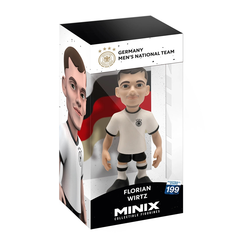 Deutschlands Fussballzukunft für deine Sammlung! Mit der Florian Wirtz Sammelfigur von Minix holst du dir eines der grössten Talente des deutschen Fussballs ins Haus. Die ca. 12 cm grosse Figur zeigt den Mittelfeld-Magier im klassischen weissen Heimtrikot der deutschen Nationalmannschaft mit dem markanten Adler-Emblem auf der Brust.