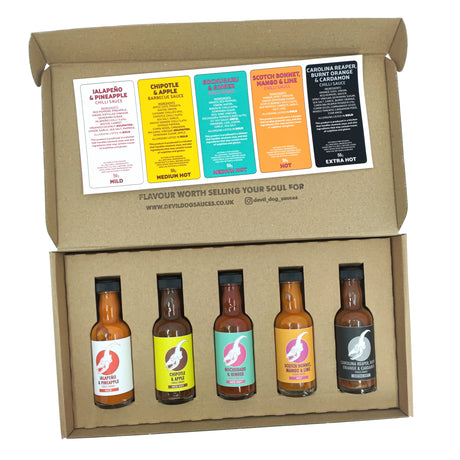 DevilDog Sauces 5er Geschenkset Mild-Hot (5 x 50 ml) - Scharfe Sauce