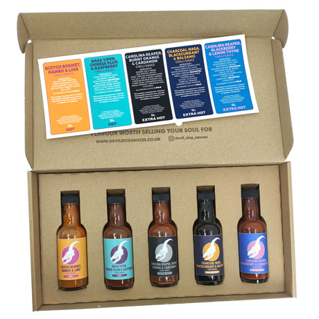 DevilDog Sauces 5er Geschenkset Xxtra Hot (5 x 50 ml) - Scharfe Sauce