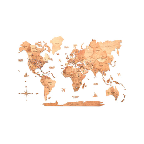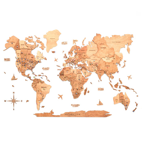 Enjoy The Wood Carte du monde 2D pour enfants en bois - décoration murale