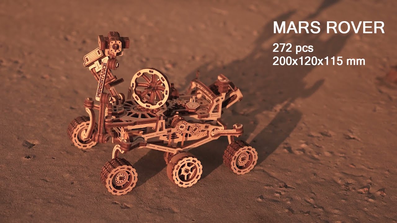 Un entraînement par courroie analogique (utilisant un élastique au lieu d'une courroie) assurant la rotation des roues motrices est responsable de la mobilité du rover en bois. La suspension est mise en œuvre de manière similaire - le modèle assemblé simule un mouvement sur le sol martien, similaire à l'original, qui se trouve à des millions de kilomètres de la Terre. Grâce à ce kit de construction en bois 3D, l'enfant pourra réaliser sa mission sur Mars, en appréciant le travail effectué et les compétences acquises.