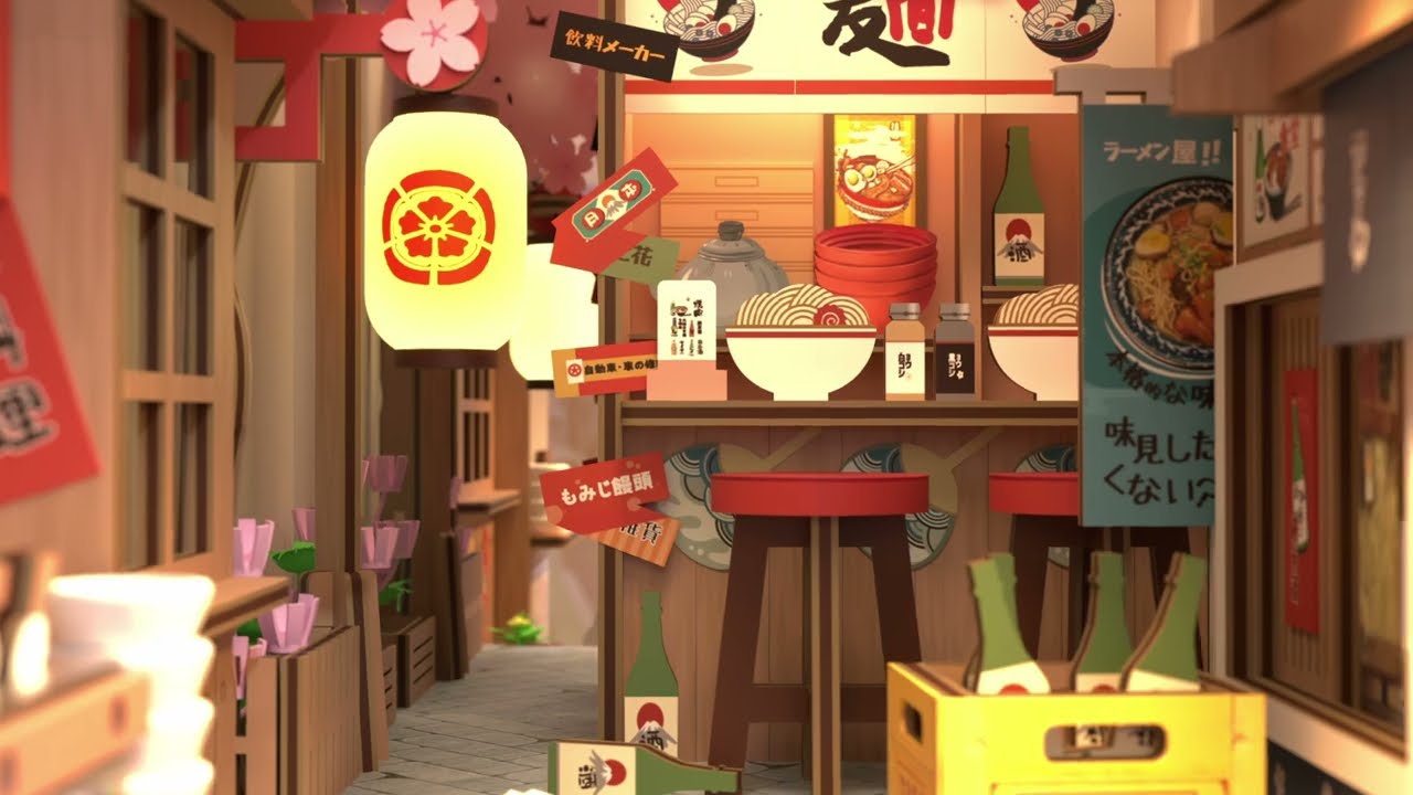Mit authentischen Details wie leuchtenden Schildern, winzigen Sake-Kisten, Menütafeln und traditionellen Holzfassaden vermittelt das Book Nook das Lebensgefühl eines lauen Abends in Japans Kneipenvierteln. Ob dampfende Ramen-Schalen, brutzelnde Robata-Spiesse oder ein Glas Sake – dieser kleine Strassenzug ist ein Fest für die Sinne.