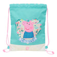- Offizielles Peppa Wutz Design: Türkisfarbener Turnbeutel mit Peppa im "Pretty Flowers" Herz-Motiv