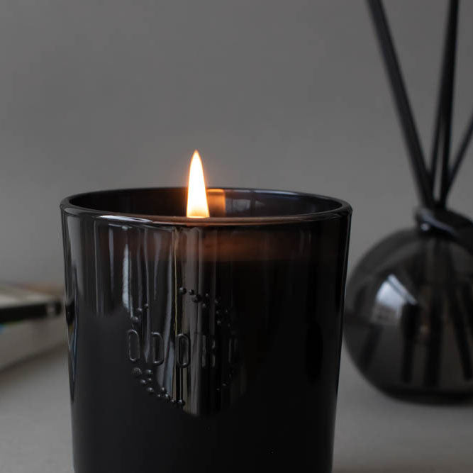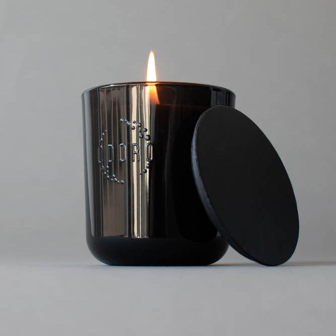 - 1x ODORO MOOD Duftkerze im schwarzen Glasbehälter mit Holzdeckel