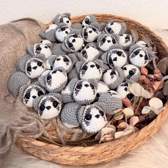 Vanessa hat in vielen Stunden Arbeit und mit Hilfe ihrer Familie unsere wunderschönen Anhänger hergestellt. In der Ostschweiz, unweit von unserem Büro, wurde jeder einzelne Waschbär gehäkelt, genäht und mit einer Schlüsselkette versehen - Alles ist feinste Handarbeit und nur in begrenzter Menge erhältlich. Auf Anfrage stellt Vanessa viele individuelle Häkelprodukte für euch her.