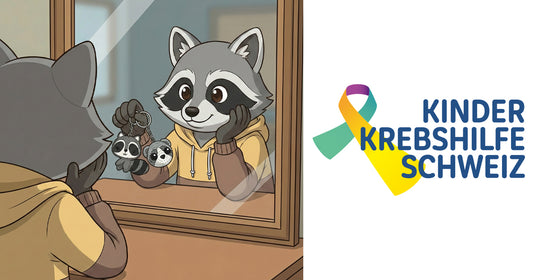 Für jeden gekaufen Waschbär-Schlüsselanhänger spenden wir den doppelten Betrag an die Kinderkrebshilfe Schweiz. Dass bedeutet der komplette Erlös der Schlüsselanhänger geht an die Krebshilfe und wir legen nochmals denselben Betrag dazu.