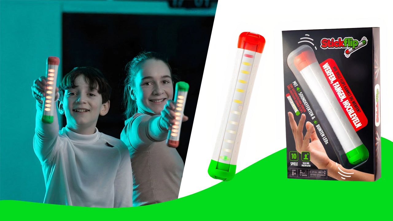 Stickflip - ChuckaRubba vereint auf einzigartige Weise Geschicklichkeit und Begeisterung für Technologie! Dabei sorgt Stickflip nicht nur für jede Menge Spass, sondern bietet auch viel Abwechslung! Insgesamt warten 10 Spiele, von denen jedes einen Highscore bereithält, den es sowohl im Einzelspiel oder auch als Team zu schlagen gilt. Perfekt für Kinder ab 8 Jahren, Teenager und alle jung gebliebenen Erwachsenen!